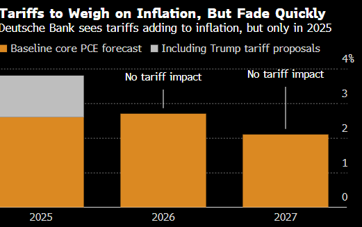 这位当选总统承诺上台后对进口商品全面加征关税。在他的第一个任期内,美联储研究人员设想了类似的情境,并得出通胀将加速上升,但时间不会持续太久的结论。由于关税最终被视为对经济的拖累,他们认为降低利率是最好的补救措施。